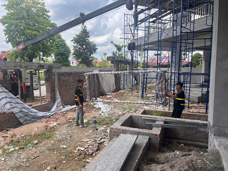Quá trình thi công lắp đặt thang máy gia đình 630kg tại thị trấn Đồi Ngô, Lục Nam, Bắc Giang đang được triển khai theo đúng kế hoạch và tiêu chuẩn kỹ thuật nghiêm ngặt. Các bước cụ thể bao gồm: