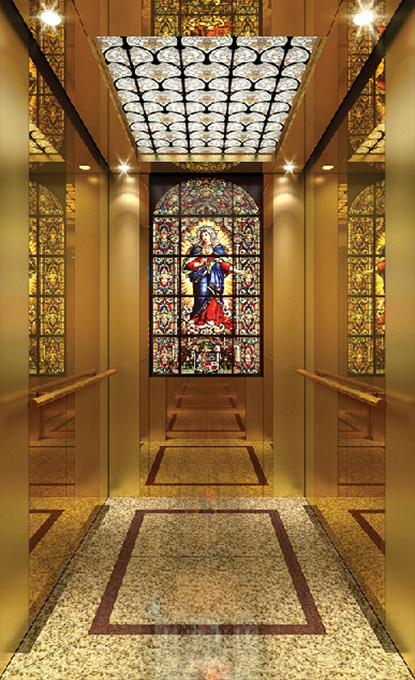 Vách: Inox sọc nhuyễn màu vàng, inox gương màu vàng, tranh kính trang trí