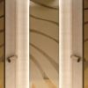 Vách: Kính nhiều lớp, thép không gỉ gương đen PVD, gỗ ép